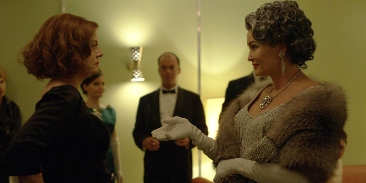 Wielką siłą "Feud" jest dynamika, z jaką potrafi przechodzić od jednego aspektu fabuły do drugiego. Joan Crawford i Bette Davis potrafią tu w jednej chwili być wspaniałymi, idealnie się uzupełniającymi artystkami wspólnie występującymi przeciwko branżowej niesprawiedliwości, a chwilę później karykaturalnymi postaciami rodem z plotkarskich kolumn w najgorszym szmatławcu. Udaje się jednak w tym wszystkim zachować równowagę, co umieszcza serial gdzieś pomiędzy dwiema innymi antologiami Murphy'ego ("American Horror Story" i "American Crime Story"). Bywa kampowo, ale bywa też znacznie spokojniej, gdy twórca pozwala błyszczeć swoim gwiazdom. Jessica Lange i Susan Sarandon tworzą bez mała genialne kreacje, uczłowieczając postaci, z których kultura popularna uczyniła swego rodzaju statuy. Nieważne, czy akurat jesteśmy na planie filmowym, czy w zaciszu (o ile w ich przypadku można o czymś takim mówić) domostw, obydwie bohaterki nigdy nie stają się manekinami. "Feud" podchodzi do nich zarówno z ogromnym szacunkiem, nie chcąc pozostawiać absolutnie niczego przypadkowi, jak i odpowiednią dozą dystansu, czyniąc z nich pełne wad, a dzięki temu zwyczajnie ludzkie postaci.